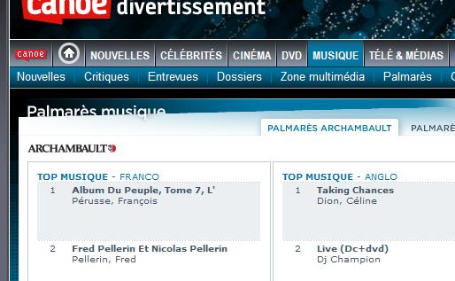 'Journal de Montréal' in 2006, heeft aangetoond dat Celine de meest populaire