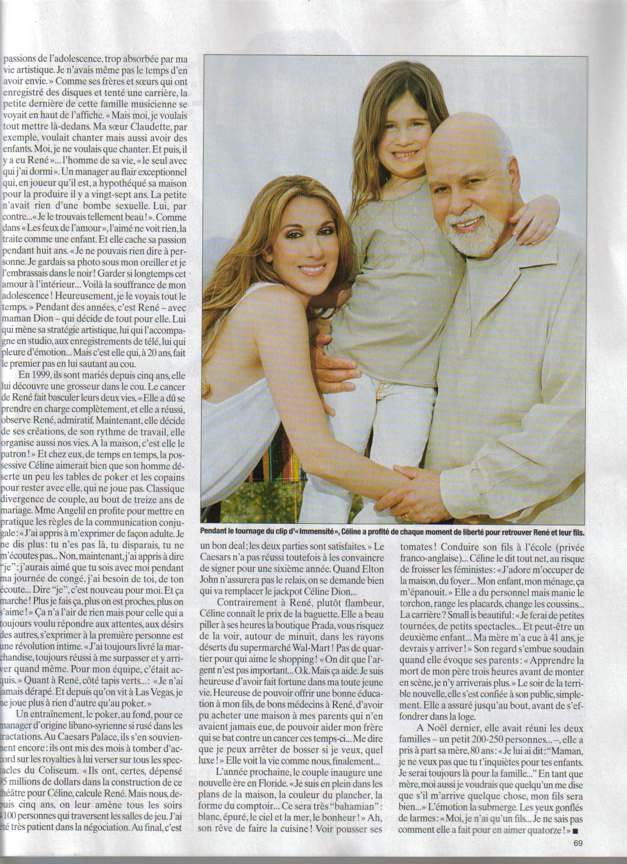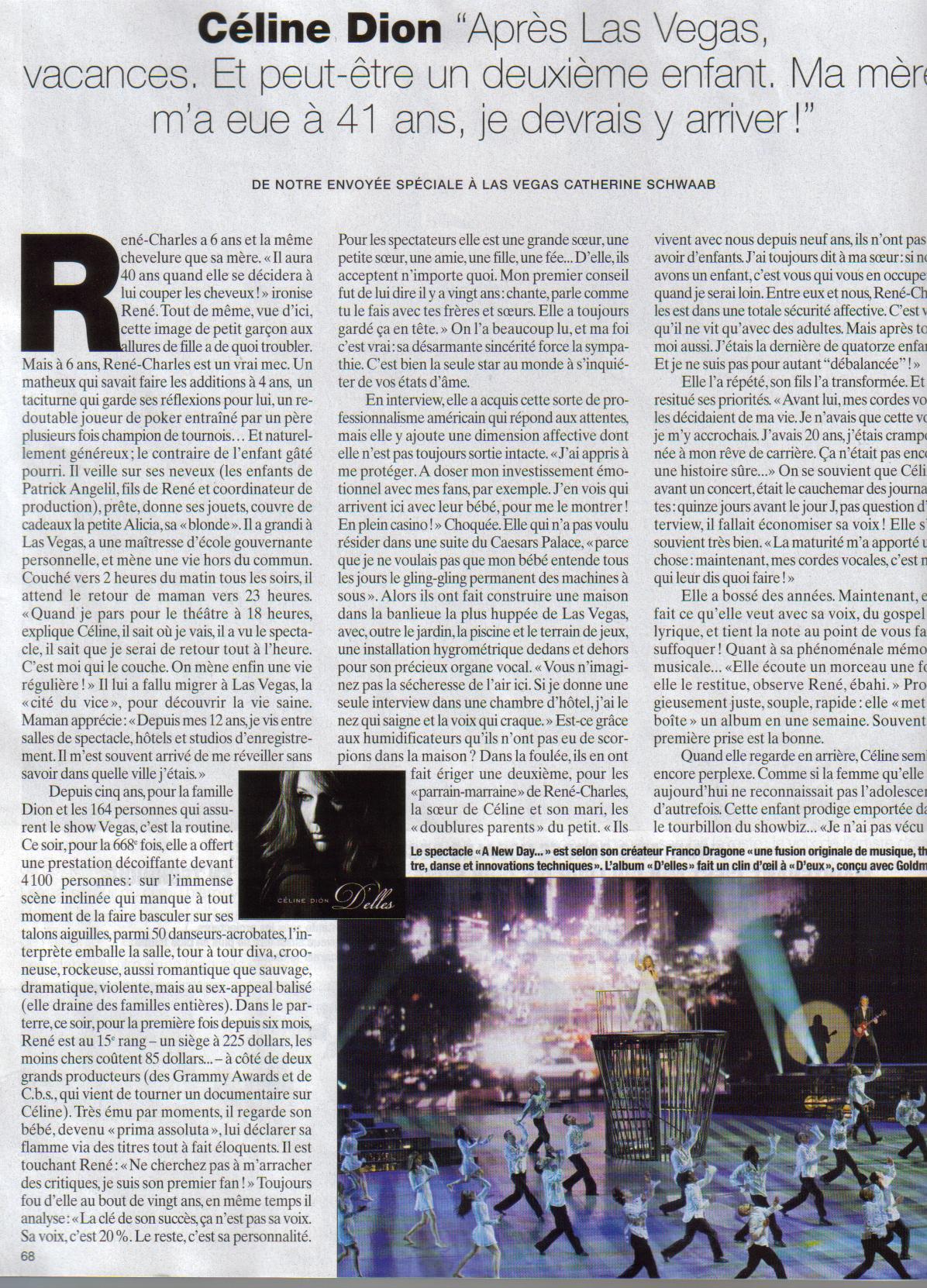Voor deze gelegenheid zijn Denise Bombardier en Marie Laberge zelfs naar to Las Vegas gevlogen, om Céline's A new day... te zien en met onze diva te praten. Lise Payette, die altijd al in het hart van Céline gesloten was, heeft lang geleden een interview met Céline gedaan. In dat interview deelden ze het verhaal van de liefde die Céline had voor René.