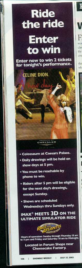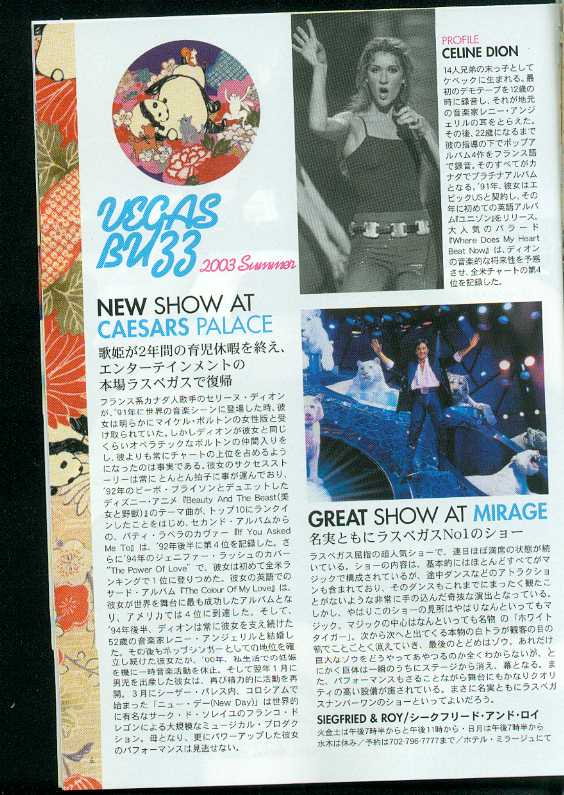 - Nossa amiga Shalimar enviou-me estes scans de uma revista de turismo japonesa, chamadaSummer 2003 (Verão 2003), a qual traz uma reportagem sobre a Céline em Las vegaswhich brings a cool report on Céline in Las Vegas: